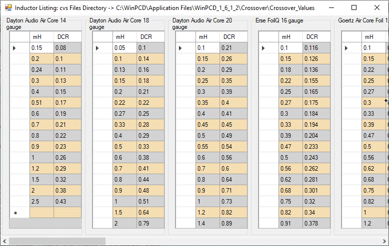 - Added a new form to display a set of inductor lists of values/impedance (mh/ohms). The user can edit/add/delete these.