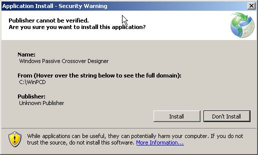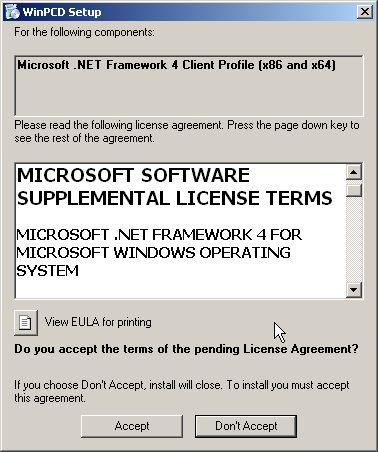 Next you should see the install request window for the WinPCD. Accept this.