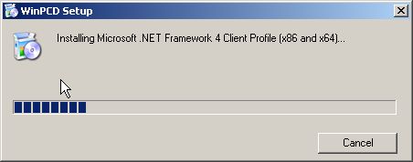After you accept the terms, installation of .NET will continue with a .NET installation progress window. If .NET is already installed, it will go immediately to the WinPCD installation.