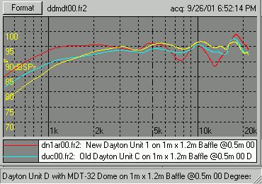 The new version of the Dayton (the only one of two I have which I've tested) doesn't look good. This is counter to the accolades others are reporting after listening to them. My unit may just be an anomoly. I will add tests of the second unit later (when I can find which box it's in, as I just moved!).