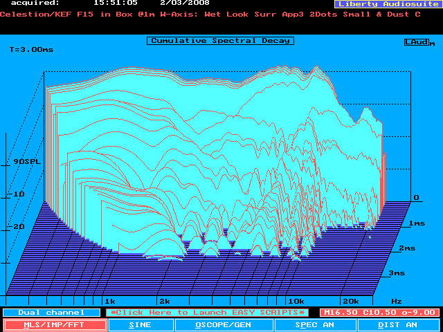 As it was for the Insignia, the surround tweak is one of the most useful going if the driver has an impedance mismatch as this one exhibited. It doesn't require any elaborate patterns and doesn't take much time. The three coats that I applied took, from start to finish, about one hour. Successive coats can be applied soon after the previous one has started to dry. The benefit cannot be had any other way and has little in the way of negative consequences.