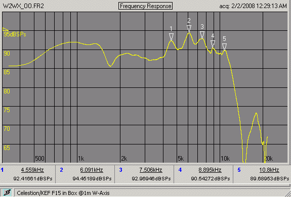 The other problem area is the set of peaks at 4.6K, 6.1K and 7.5K. It's interesting to note that the difference from one to the next is close to the same delta, about 1.5KHz. Having no access to expensive test equipment such as a laser interferometer, I can only guess as to the specific resonant mode and where it's occuring on the driver. My guess is that it is associated with the "phase plug" style dust cap (here on referred to only as a dust cap). Further mods shown later shed more light on it.