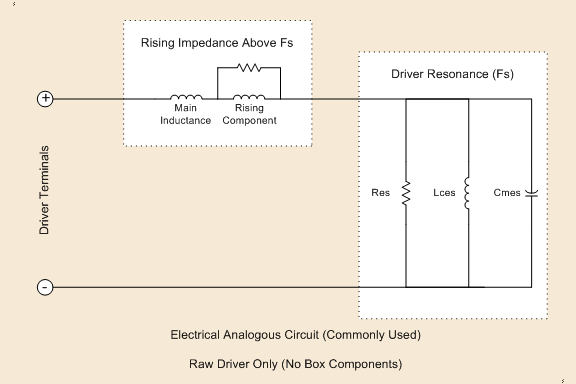 The basic representations of loudspeakers are shown in the electrical and acoustical models. The first one is the classic Thiele/Small acoustical analogous circuit (for low frequency modelling of driver and box only). The second one is the common driver electrical analogous circuit for the full range model (driver only, no box).