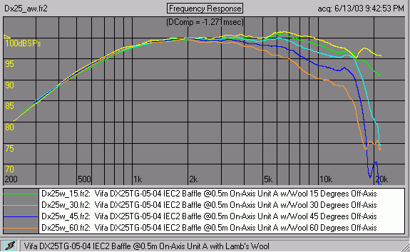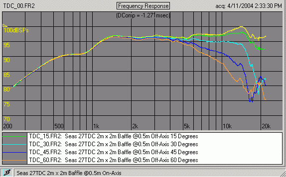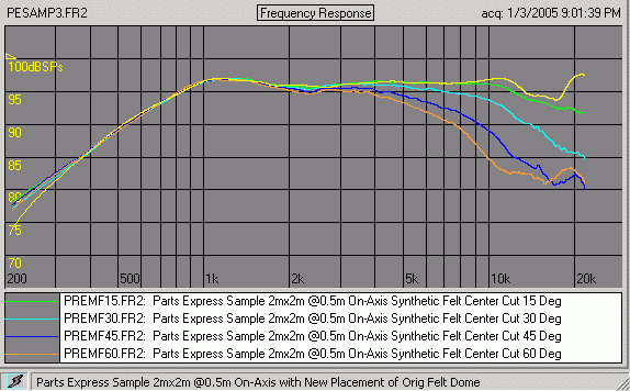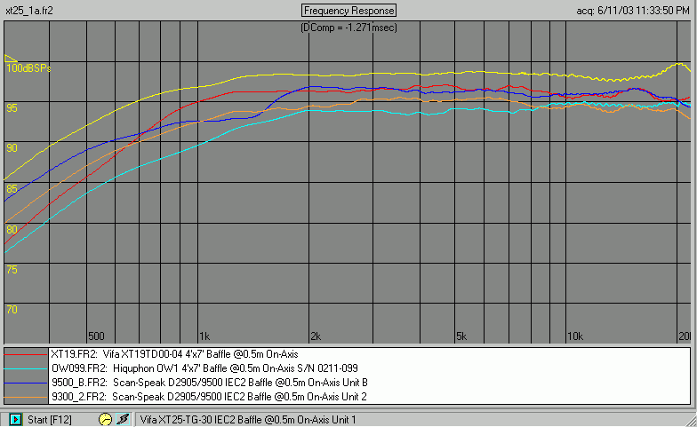 Note that there is no smoothing applied to these curves. All files for download were taken on my "quasi-IEC" baffle, 4ft x 7ft, or the newer one with extension that make it 2m x 2m.